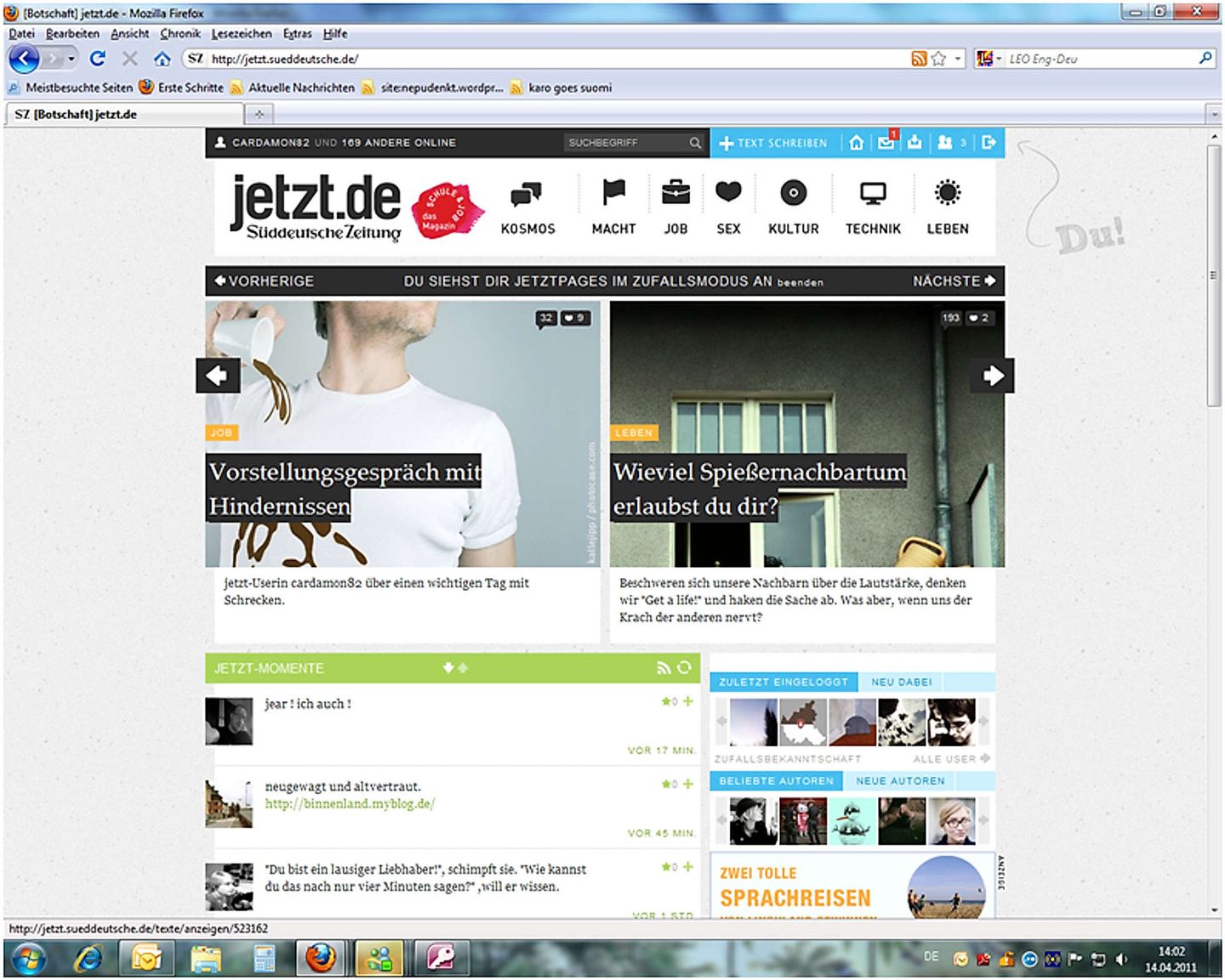 Auf der Startseite bei jetzt.de