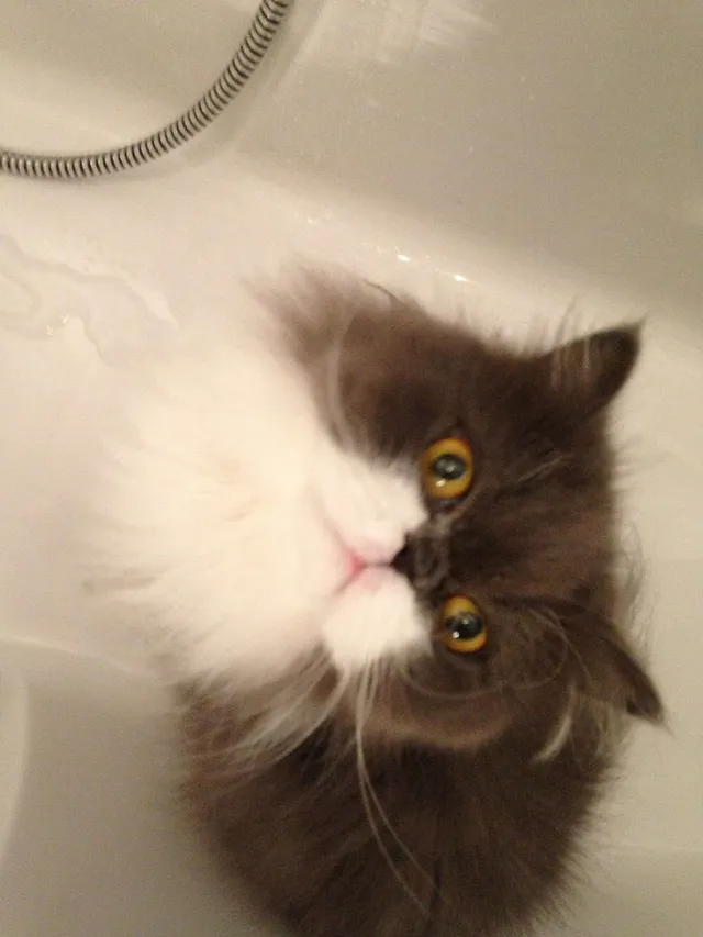 16:44 Er hat wieder geschrien. Kam wieder Wasser aus seinem Hals raus. Ich habe ihn abgetrocknet und ihm Vitaminpaste gegeben. Nun spiele ich ihm auf dem Laptop schnurrende Katzen vor. Das scheint ihm zu gefallen. Zum Glück gibt es davon auf Youtube jede Menge.