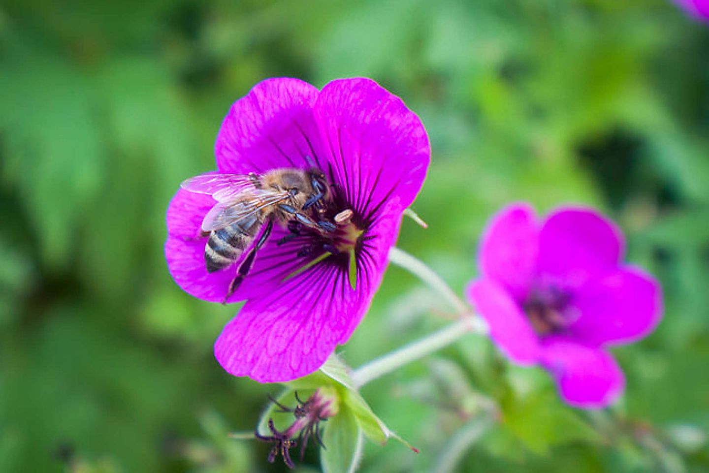 Arbeiterbienen fliegen am Tag rund 40.000 Blüten an, um Nahrung zu sammeln. Ganz nebenbei kommt es dabei zur Bestäubung der Blüten und die Spermazelle der Pollen wird von der Biene auf die empfänglichen, weiblichen Blütenteile getragen6.