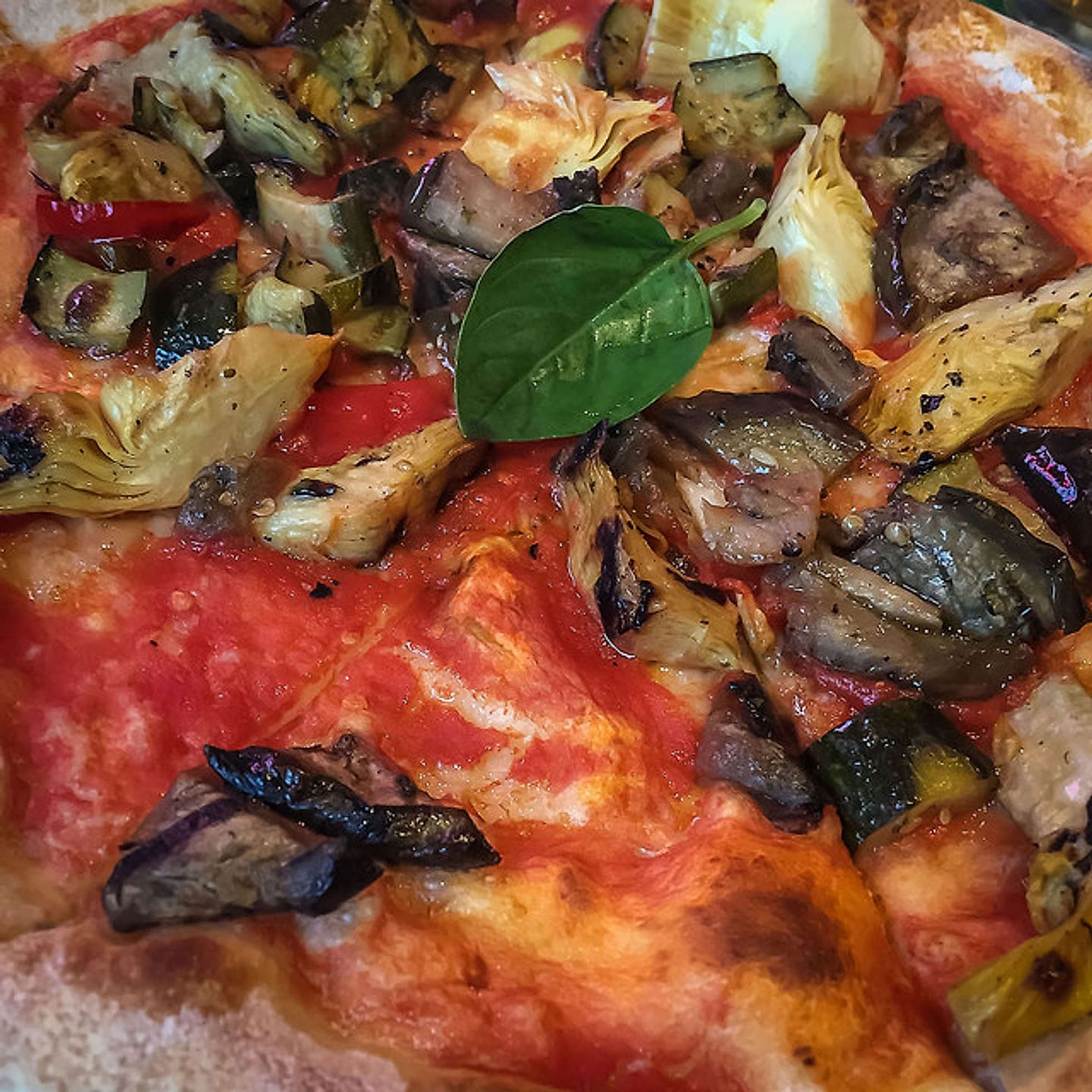 Als nächstes kam die Speisekarte auf den Tisch und wir freuten uns wie verrückt: Ein eigenes veganes Kapitel! Nach unserer Bestellung dauerte es nicht lange und zwei duftende Steinofenpizzas, groß wie Mühlräder, standen vor uns. Wir konnten uns nicht satt sehen an diesem schmackhaftem Anblick und wurden nicht enttäuscht.