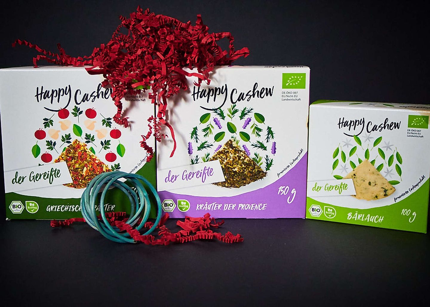 In der "Käsealternativerei" (ich glaube, "vegane Käserei" darf man nicht mehr sagen, danke lieber Gesetzgeber) werden ausschließlich Rohstoffe in Bio-Qualität verwendet. Die ungesättigten Fettsäuren, Vitamine, Mineralstoffe und natürlich der besondere Geschmack der Cashews machen die "Happy Cheeze" Produktpalette zu dem was sie ist. Der besondere Clou: Fermentation und ganz viel Zeit zum Reifen.