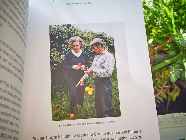 Es ist sehr liebevoll aufbereitet. Der Text wird immer wieder von Erinnerungsfotos abgelöst, was es sehr persönlich macht. Alles begann damit, dass Sabines Mann Kurt 1986 eine Finca in Südspanien kaufte. Der Duft der Orangenbäume, der sie auf ihrer ersten Reise dorthin empfing betörte sie. Sie lernte über einen Nachbarn die Heilkraft der Aloe kennen. Der Rest ist Geschichte.