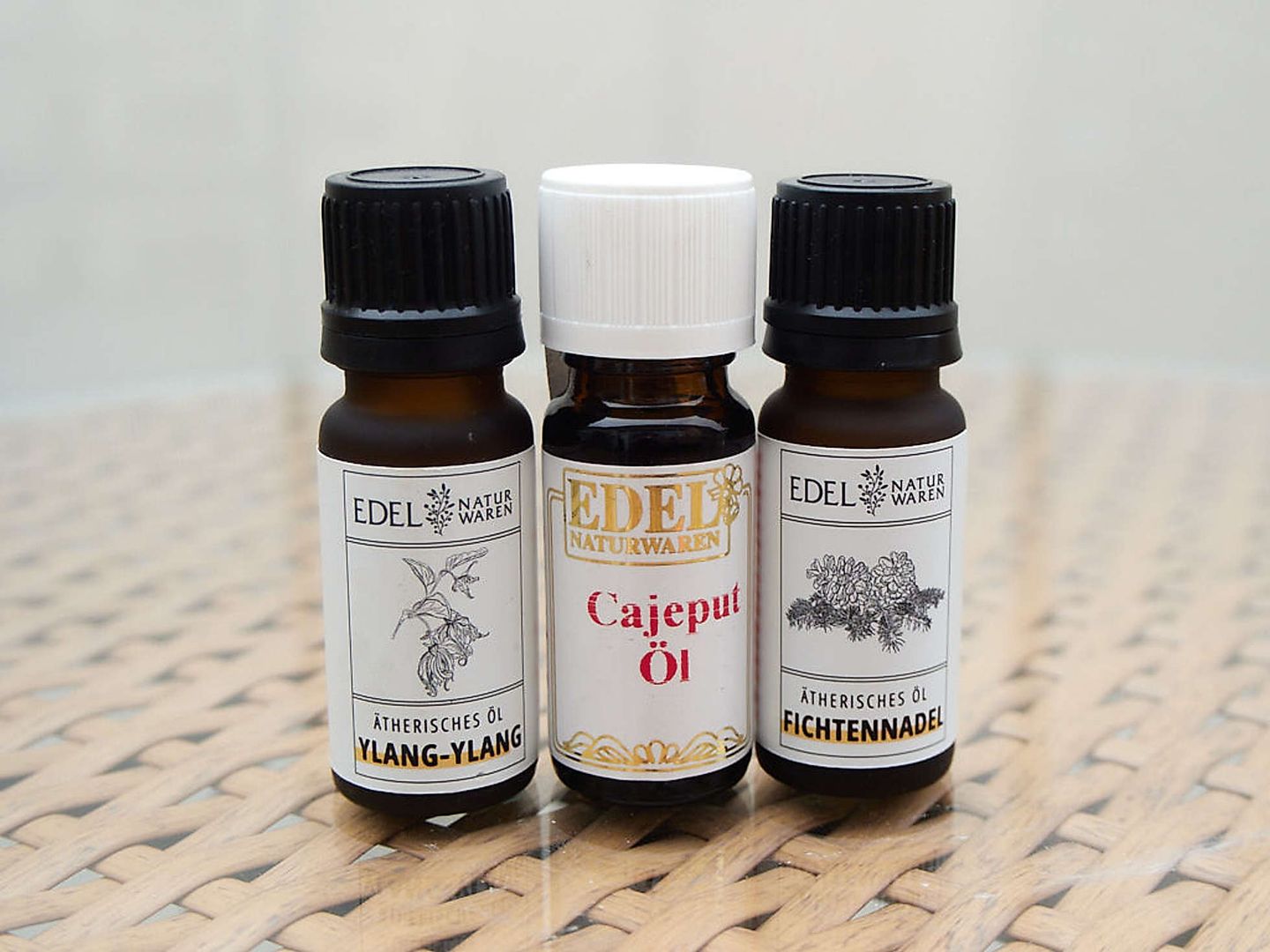 Ich habe eigentlich immer verschiedene ätherische Öle im Einsatz. Lavendel- und Orangen-Öl gehören bei mir zum Beispiel fest zum Inventar. Neu dazu gekommen sind jetzt das Cajeput-Öl, das Fichtennadel-Öl und das Ylang Ylang-Öl von Edel Naturwaren.
