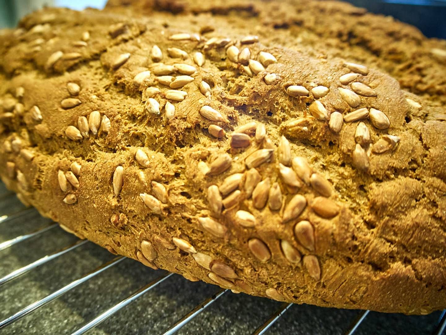 Gebt alle Zutaten bis auf die Sonnenblumenkerne in eine Rührschüssel und knetet sie zu einem elastischen Teig. Deckt die Schüssel ab und lasst Euer Brot an einem möglichst warmen und vor Zugluft geschützten Ort für ungefähr eine Stunde gehen. Bereitet ein Backblech mit Backpapier vor.