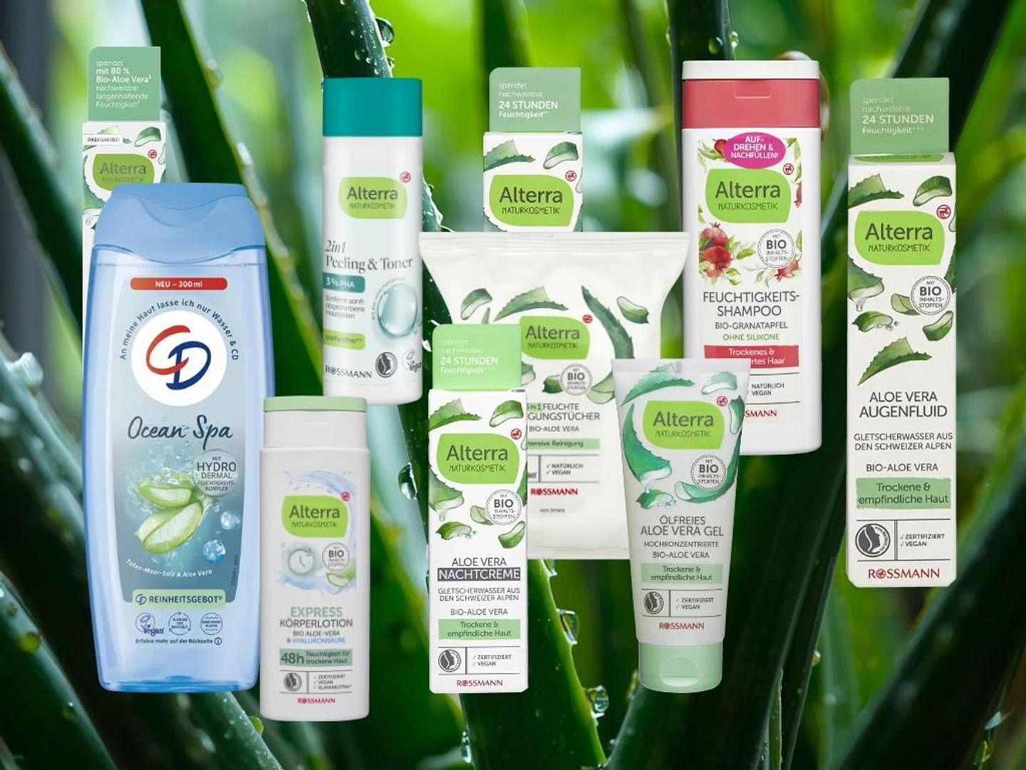 Bei Rossmann entdecke ich immer wieder Neues und habe inzwischen einige Klassiker, die mich schon sehr lange begleiten und zu denen ich immer wieder greife. Zu diesen Alltime-Favourites zählen auf jeden Fall auch die Marken Alterra NATURKOSMETIK und CD. Beide sind PETA-zertifiziert, absolut erschwinglich und klar gekennzeichnet. Dass beide Brands auch noch so viele Produkte mit meiner Lieblingszutat Aloe Vera im Sortiment haben, ist für mich ein absoluter Glückstreffer.
